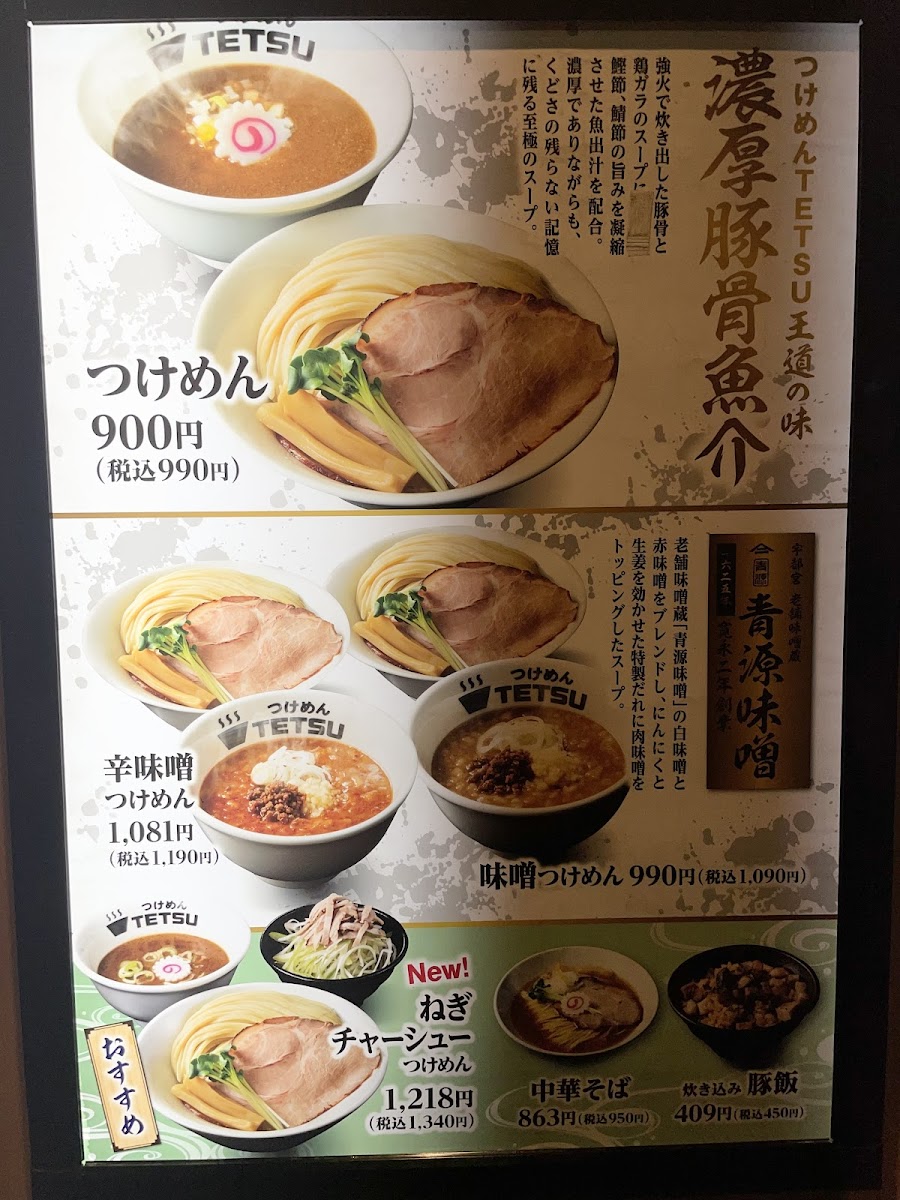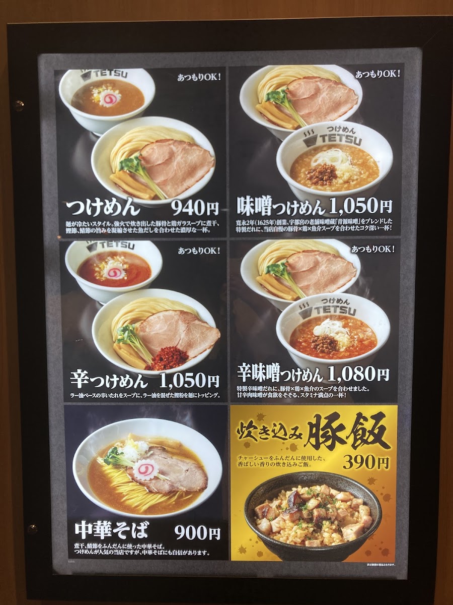 Tsukemen Tetsu Gotandaten offers a diverse and satisfying menu that highlights traditional Japanese flavors with a modern twist. The star of the menu is their signature dish, つけ麺味玉つき, a flavorful dipping ramen served with a perfectly soft-boiled egg, creating a rich and satisfying experience. The メンマ topping adds a crunchy texture and savory depth to the dish, balancing the richness of the broth. For those seeking a bit more variety, the まぜそば is a flavorful dry noodle dish, mixed with a savory sauce and topped with fresh ingredients that create a delightful contrast in every bite. Another highlight is the 水餃子, delicate dumplings filled with tender meat and served in a savory broth, offering a comforting and satisfying side dish to complement the main courses. Whether you’re craving a hearty dipping noodle experience or something lighter and more unique, Tsukemen Tetsu Gotandaten offers an array of dishes that cater to all tastes, making it a must-visit for ramen lovers in Tokyo.